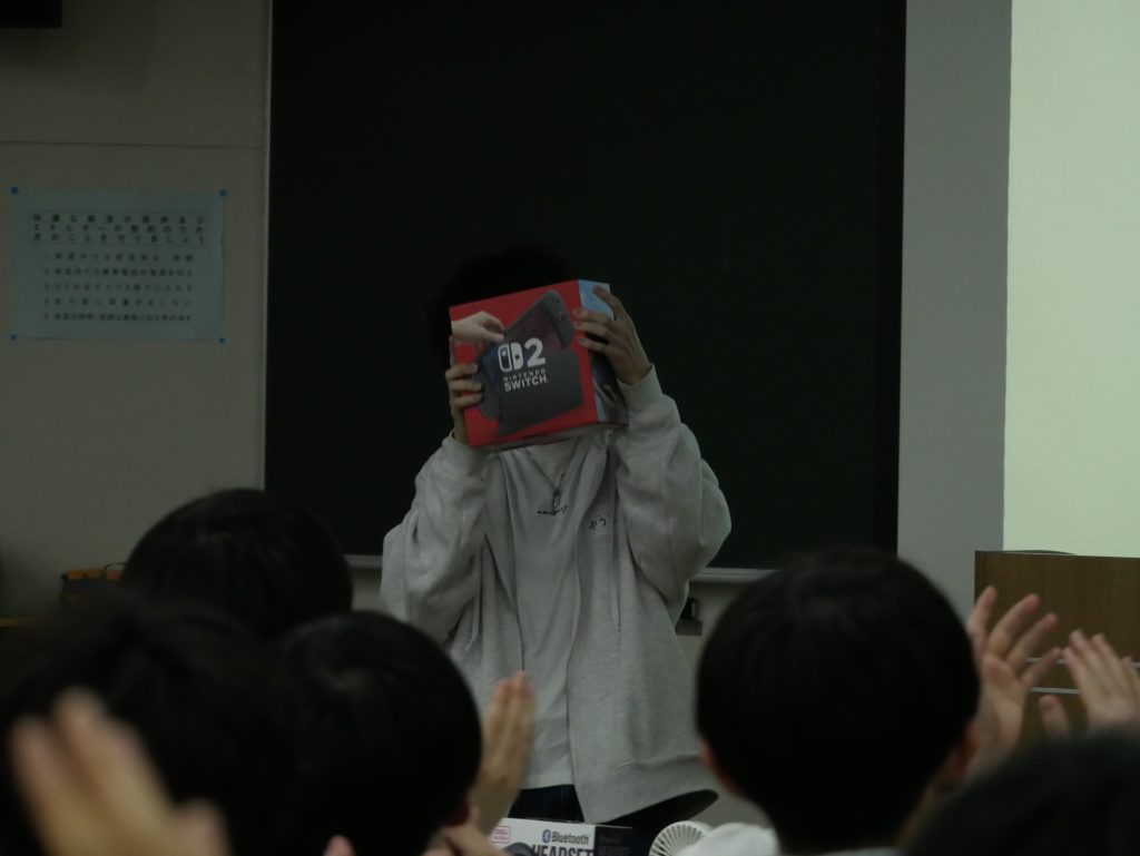 BINGO大会では、目玉景品である「Nintendo Switch2」をはじめとした豪華景品を用意。1等賞が発表された瞬間は会場のボルテージも最高潮に達し、新入生の皆さんの歓声と共にこの2日間で一番の盛り上がりを見せました。